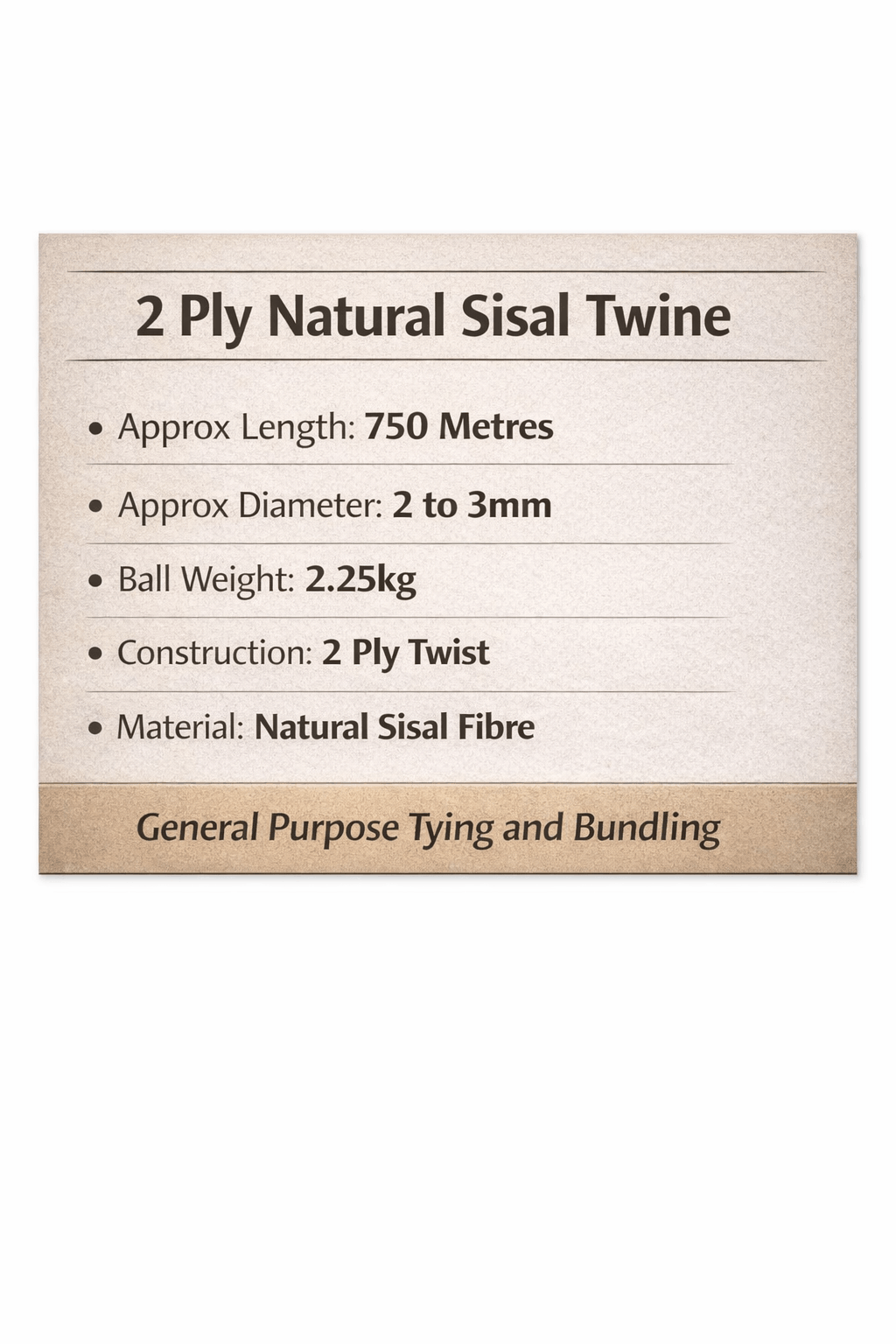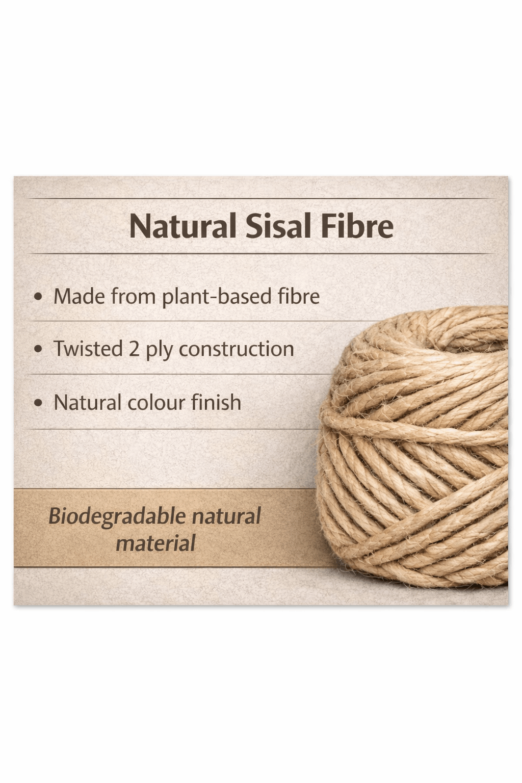 • This 2-Ply Sisal Twine is a natural fibre twine with a natural colour and texture.