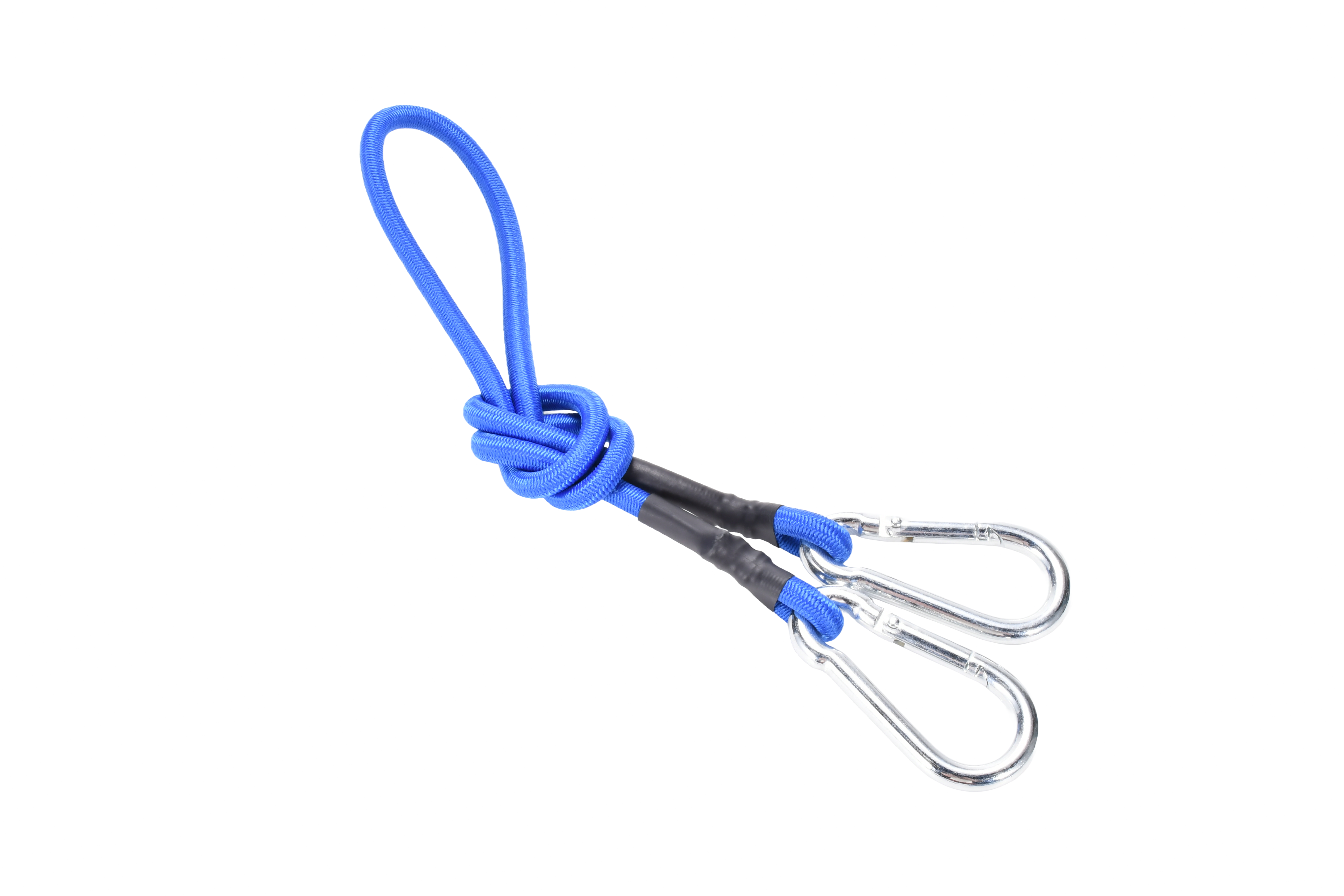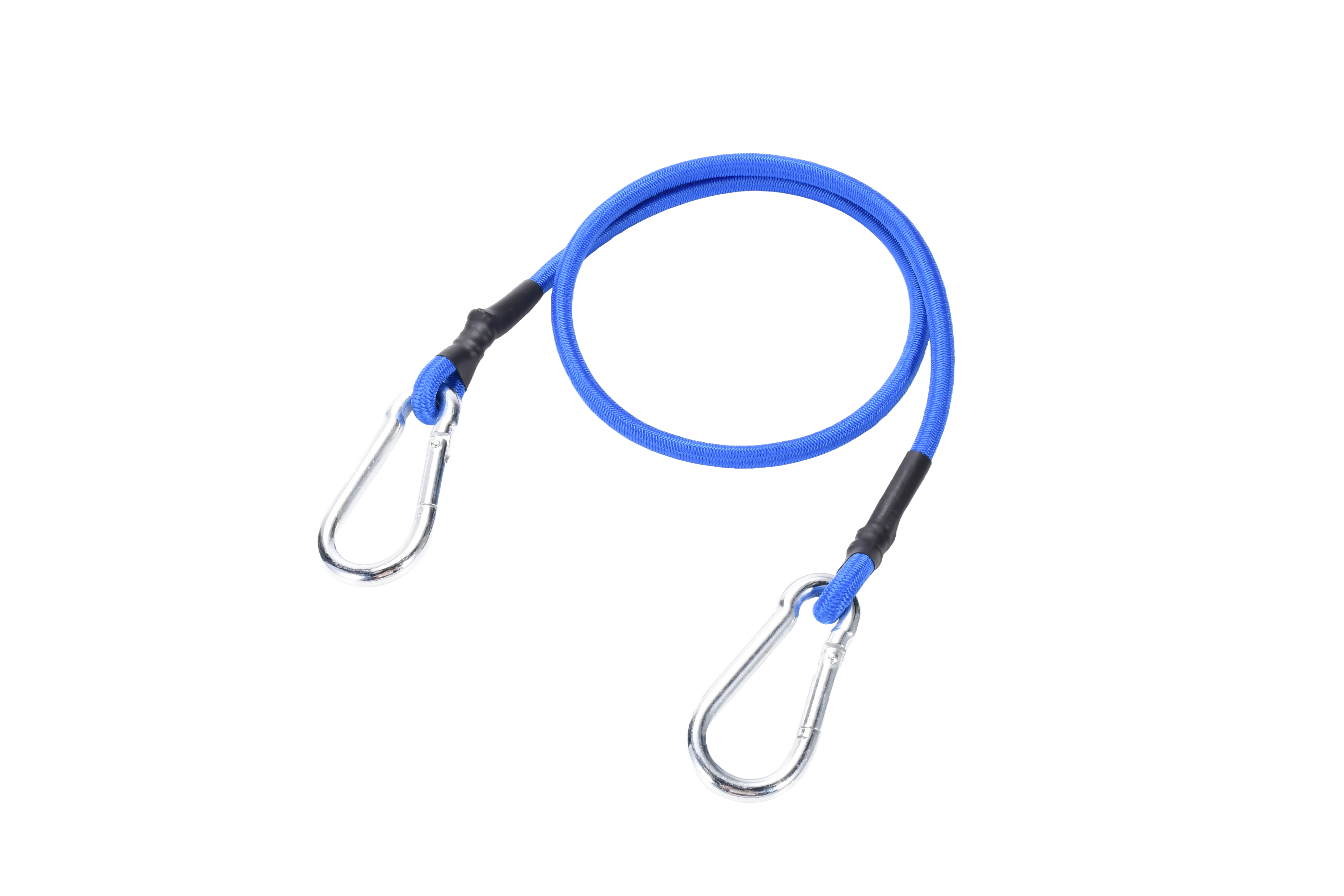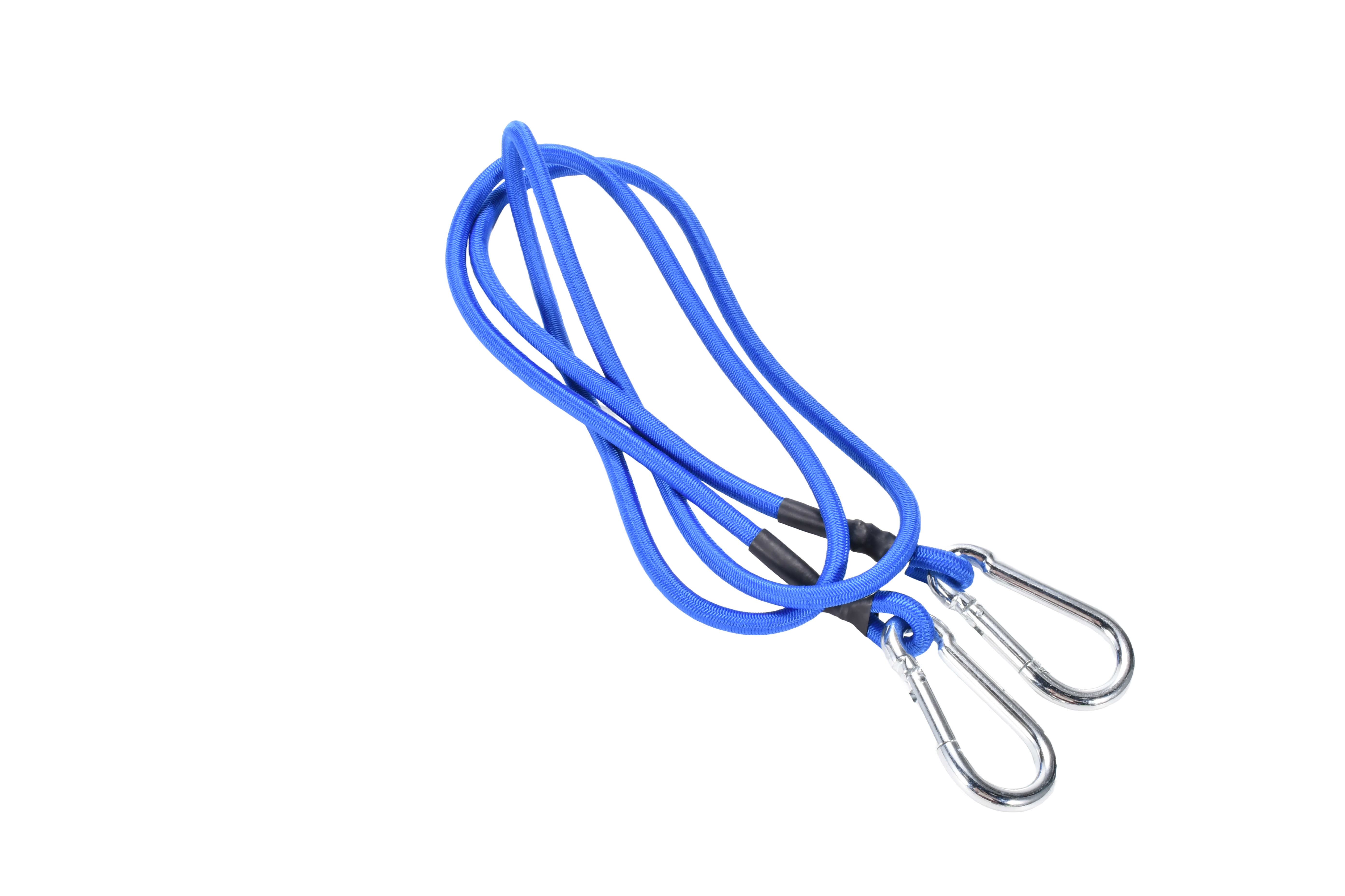 8mm blue bungee cord with a carabiner clip at end end x 72" inches (180cm).