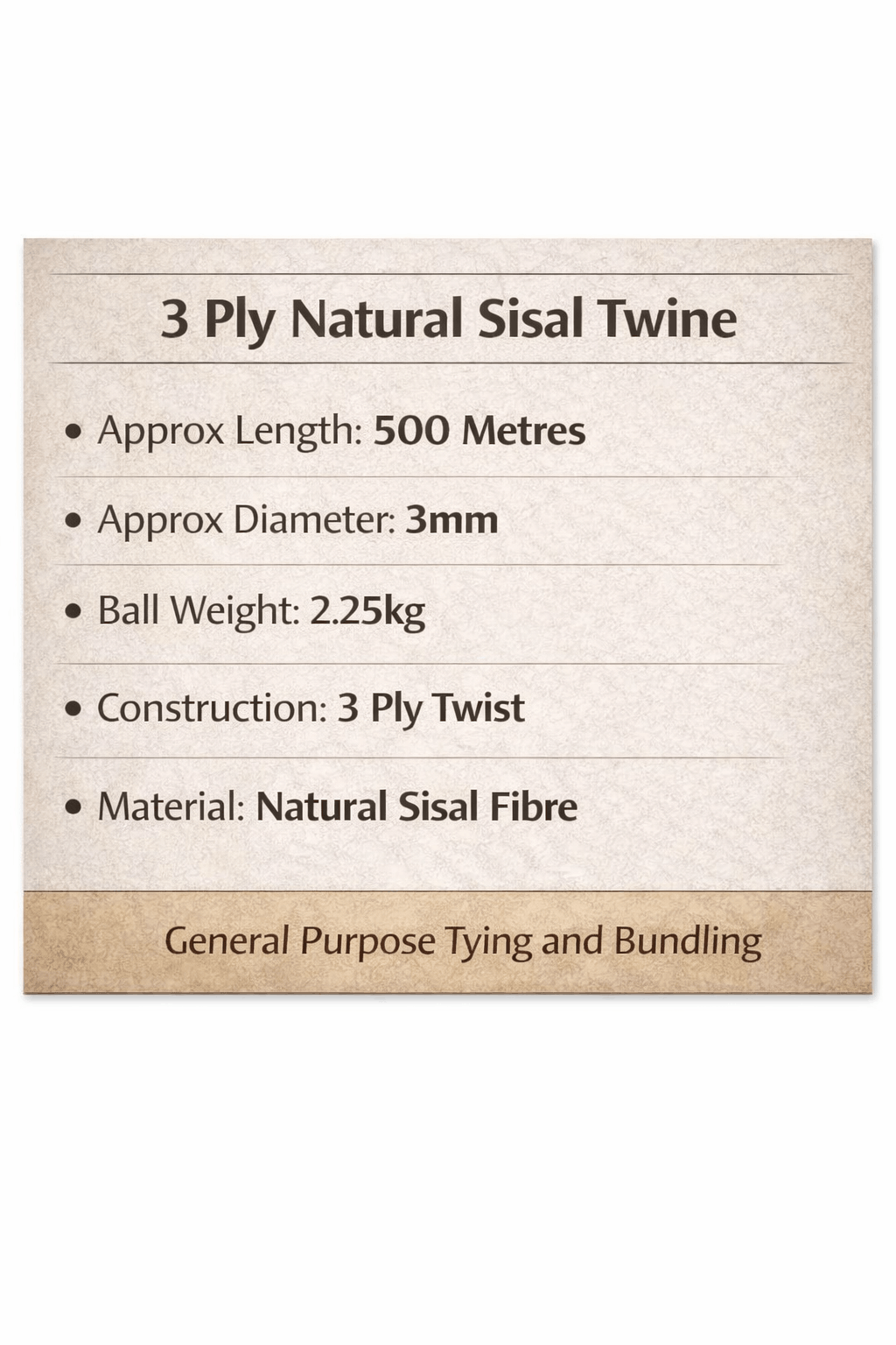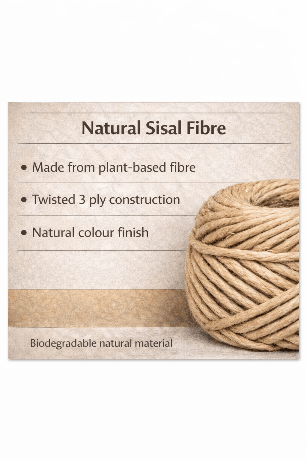 • This 3-Ply Sisal Twine is a natural fibre twine with a natural colour and texture.